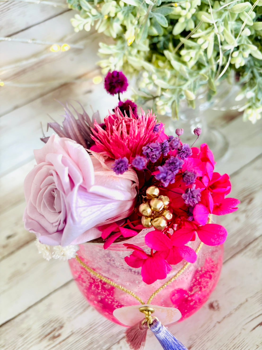 ドライフラワーは着色、加工等をしておりませんので、時間の経過とともにアンティークな色味を帯びて来ます。その過程もお楽しみ下さい。